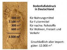 Kaum jemand in Mitteleuropa macht sich Gedanken, wie viel Ackerland jedem Menschen auf der Erde zur Verfügung steht, schon gar nicht wie groß die Fläche ist, die er selbst im Inland und vor allem im Ausland für Nahrung, Kleidung, Sprit etc. gebraucht. Dabei werden bei steigender Weltbevölkerung Böden in großem Umfang geschädigt oder gehen verloren. Der Schutz von Böden ist daher eine Forderung an die Politik, die weder national noch international ausreichend beachtet wird. Es gibt aber Möglichkeiten, selbst etwas für den Boden und seinen Schutz zu tun (Günter Miehlich).