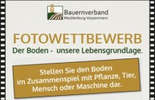 Der Bauernverband Mecklenburg-Vorpommern lädt die Menschen im Land dazu ein, sich mit Landwirtschaft und Boden zu beschäftigen. Schnappen Sie sich Ihren Fotoapparat und halten Sie fest, was Ihnen ins Auge fällt, welche Zusammenhänge es zwischen Boden, Mensch, Tier, Pflanze und Technik gibt, was der Landwirt eigentlich für den Schutz des Bodens tut, was auf unseren Böden wächst, wer im und auf dem Acker lebt oder dokumentieren Sie den Landfraß vor Ihrer Haustür.